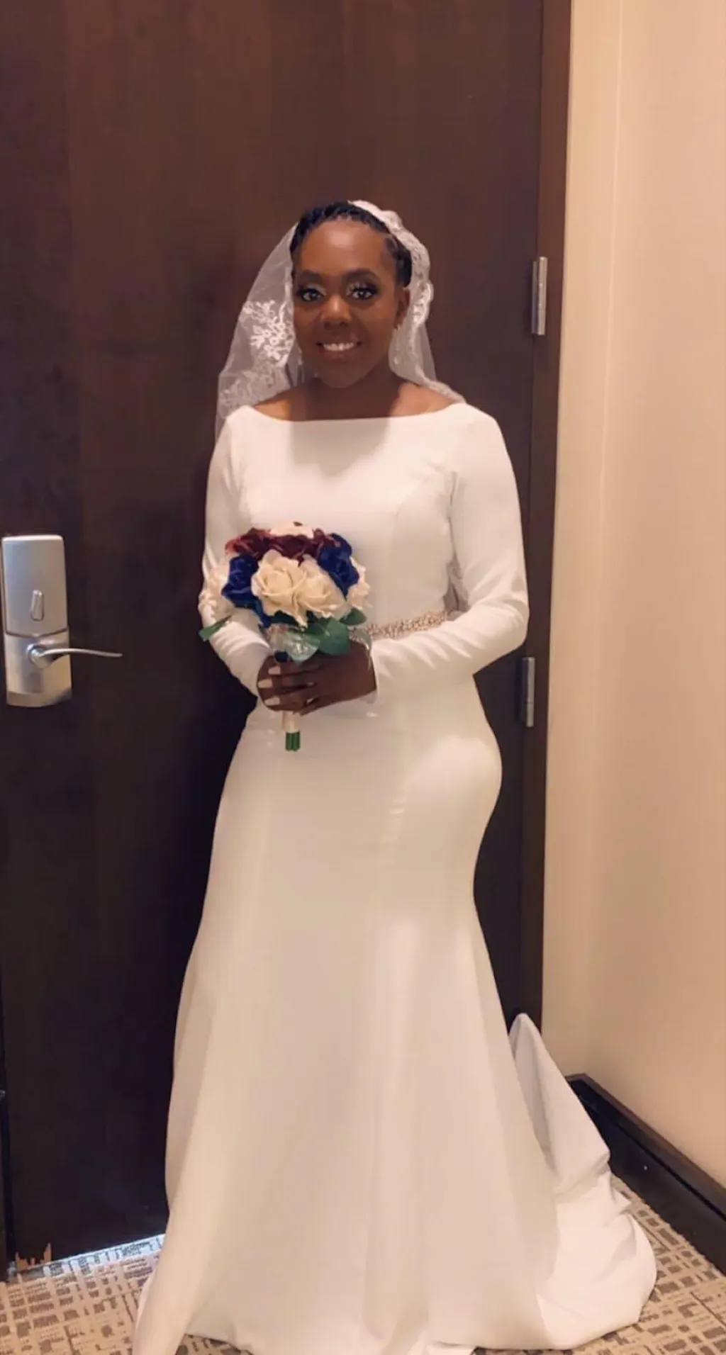 This dress fit like a glove, and was so beautiful and light weight. Do not hesitate, send your measurements in to them and they will custom create your dress. No alterations necessary.